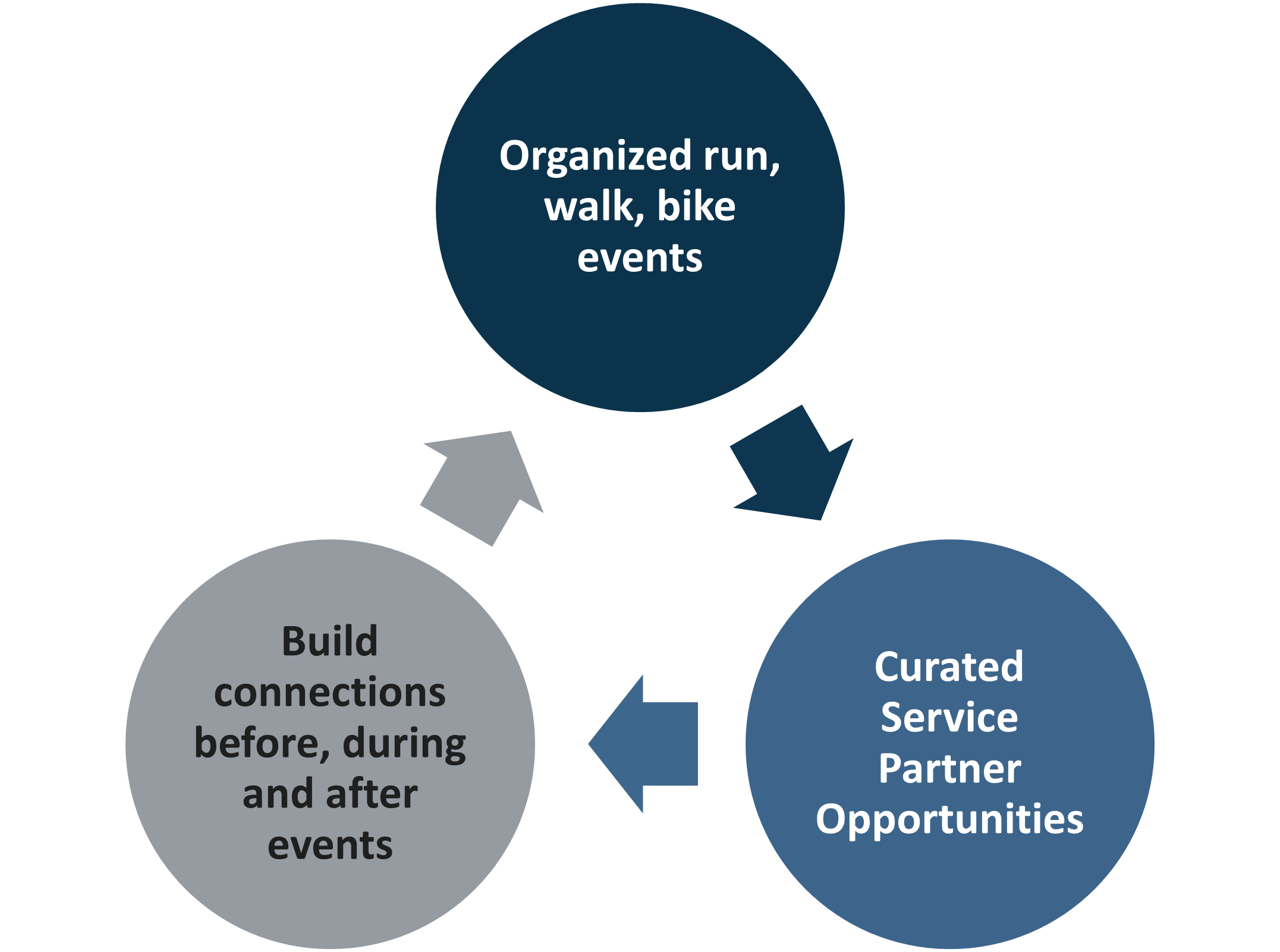 Is to build healthier, more connected communities by combining physical activity with hands-on service projects — fostering friendships, civic pride, and personal well-being along the way.